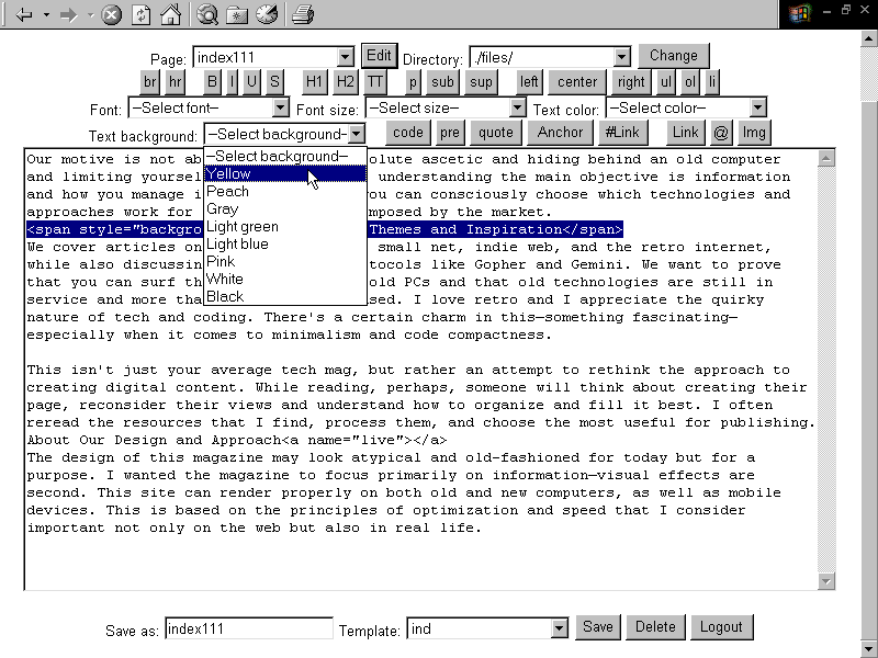 not-WYSIWYG but WYMIWYG — manual HTML code editing